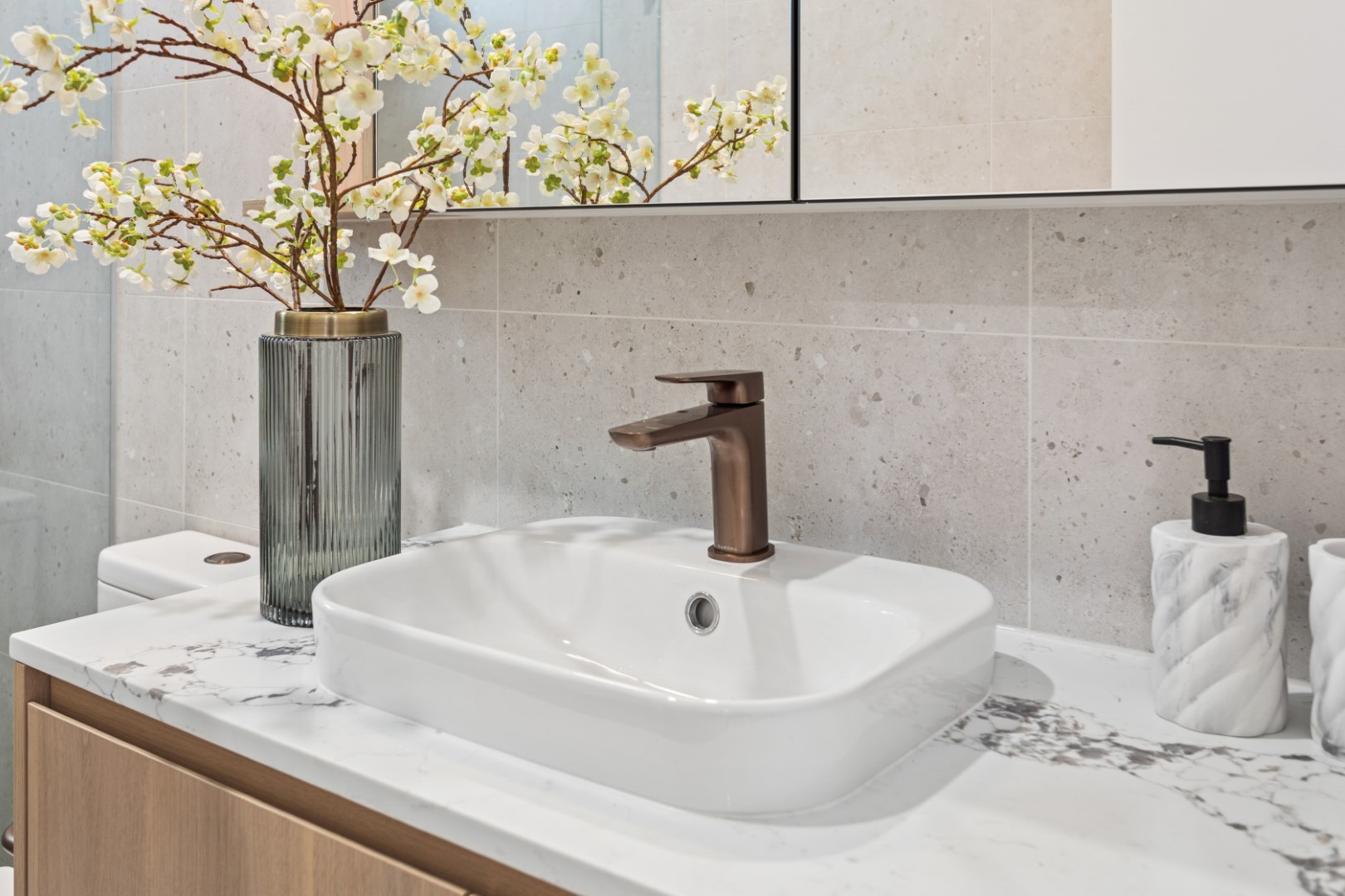 • Sophisticated stone benchtops in the kitchen, laundry, and all bathrooms