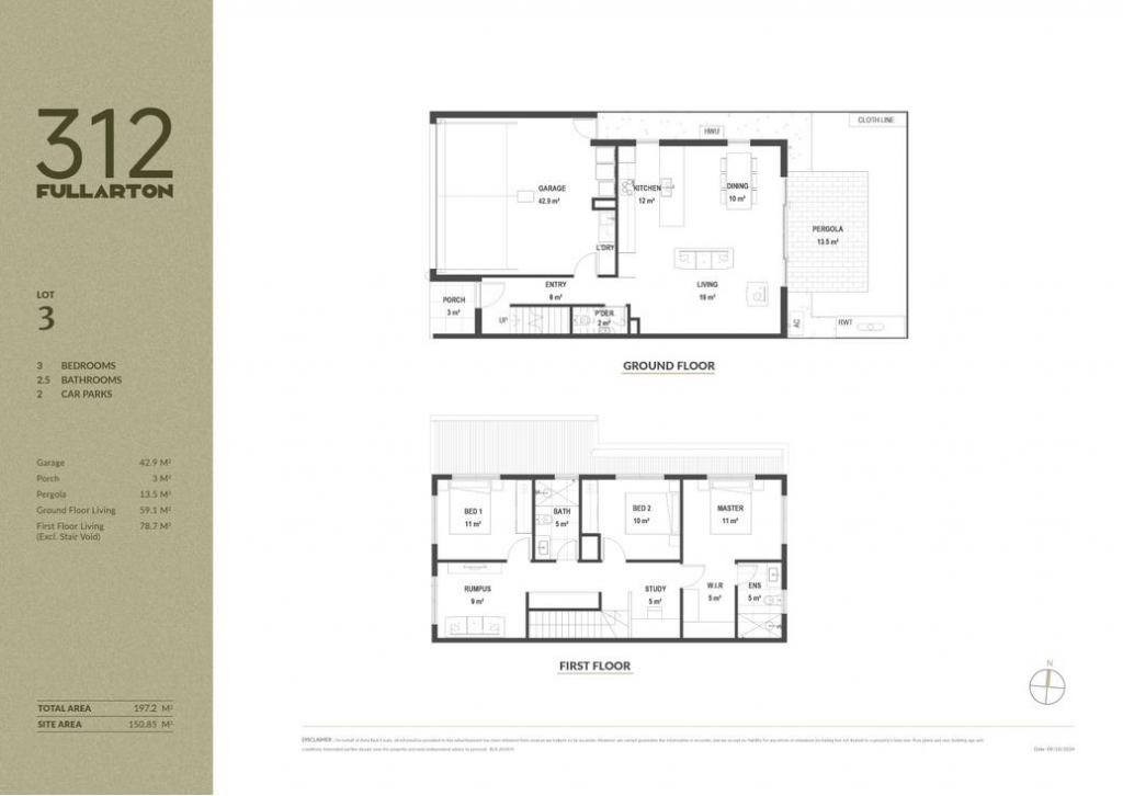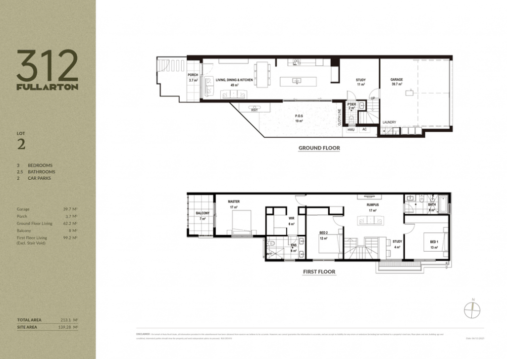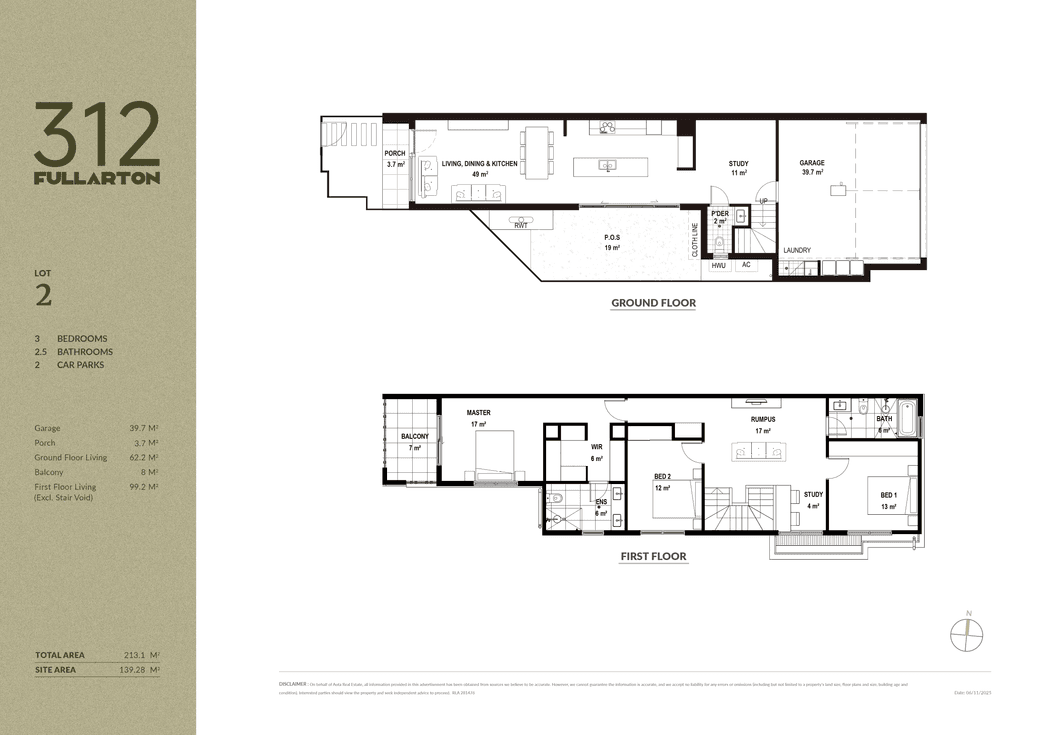• Impressive 2.7-meter high ceilings on both levels, with timber flooring downstairs living and kitchen and plush carpeting upstairs