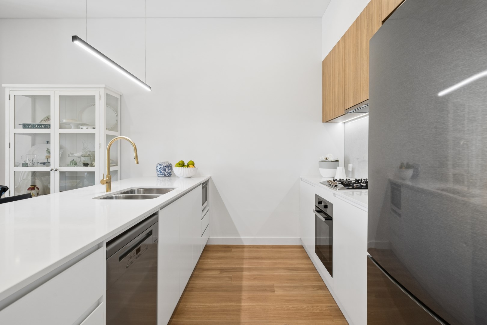 At the heart of the home is a stylish designer kitchen, featuring premium Miele appliances, stone benchtops, and gas cooking, combining functionality with modern sophistication.