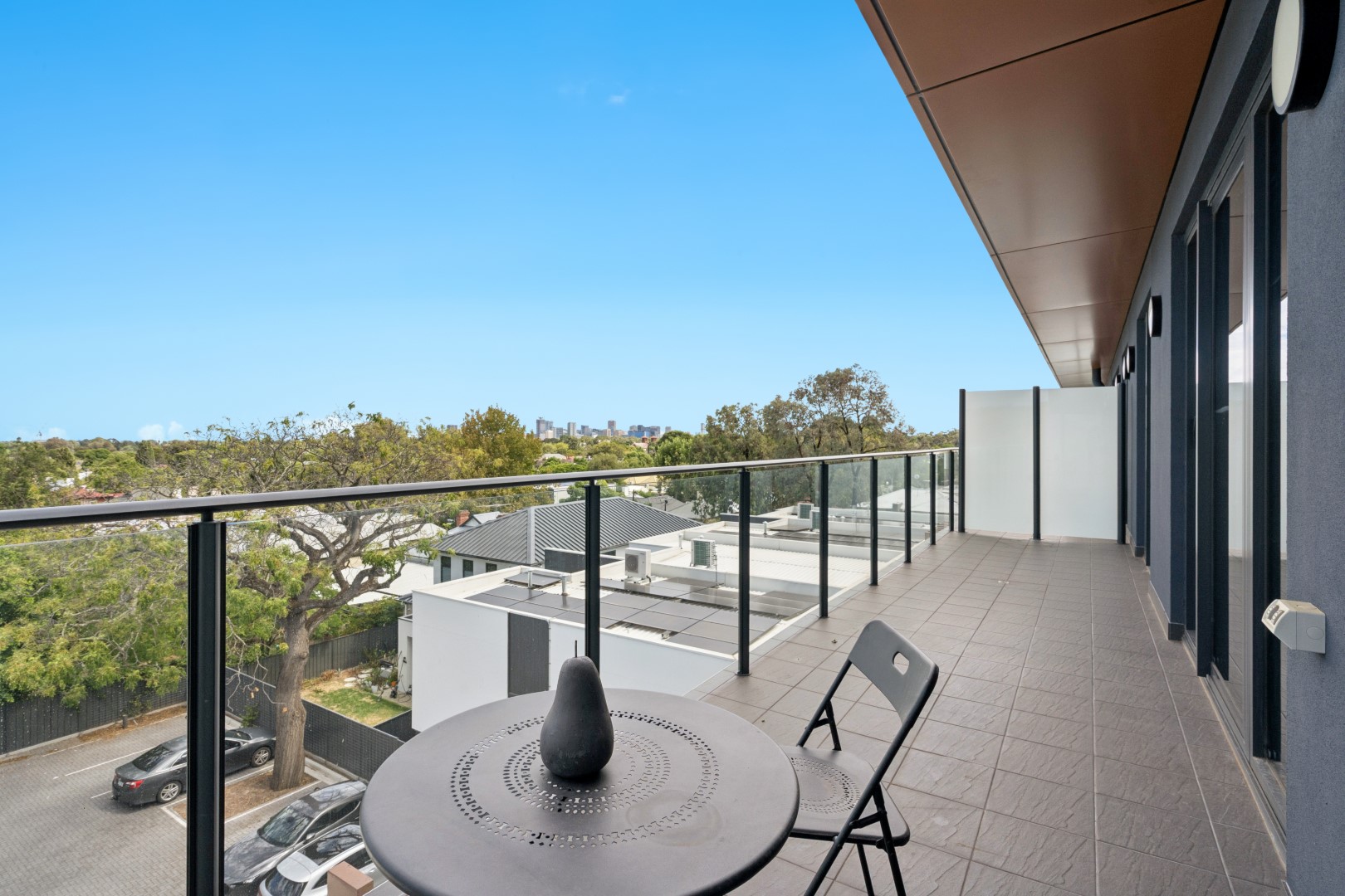 • Private balcony with elevated outlook and city glimpses