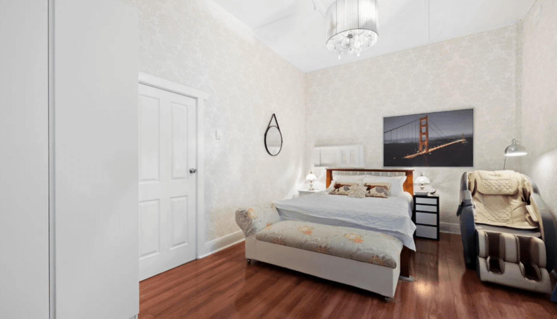 Classic features such as timber floorboards, stained glass windows, cosy fireplaces, and soaring 3.3m ceilings have been beautifully preserved, while modern upgrades ensure effortless everyday living. Two well-appointed main bathrooms divide the sleeping zones, offering privacy and convenience for multi-generational families or shared living arrangements.