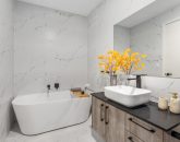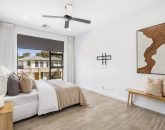 The ground floor includes a versatile bedroom or home office – ideal for guests, parents, or work-from-home flexibility. Upstairs, three spacious bedrooms are complemented by a study nook and retreat area. The master suite enjoys a walk-in robe, ceiling fan and elegant ensuite, while bedrooms two and three include built-in robes and are serviced by a stylish main bathroom with separate bath and shower.