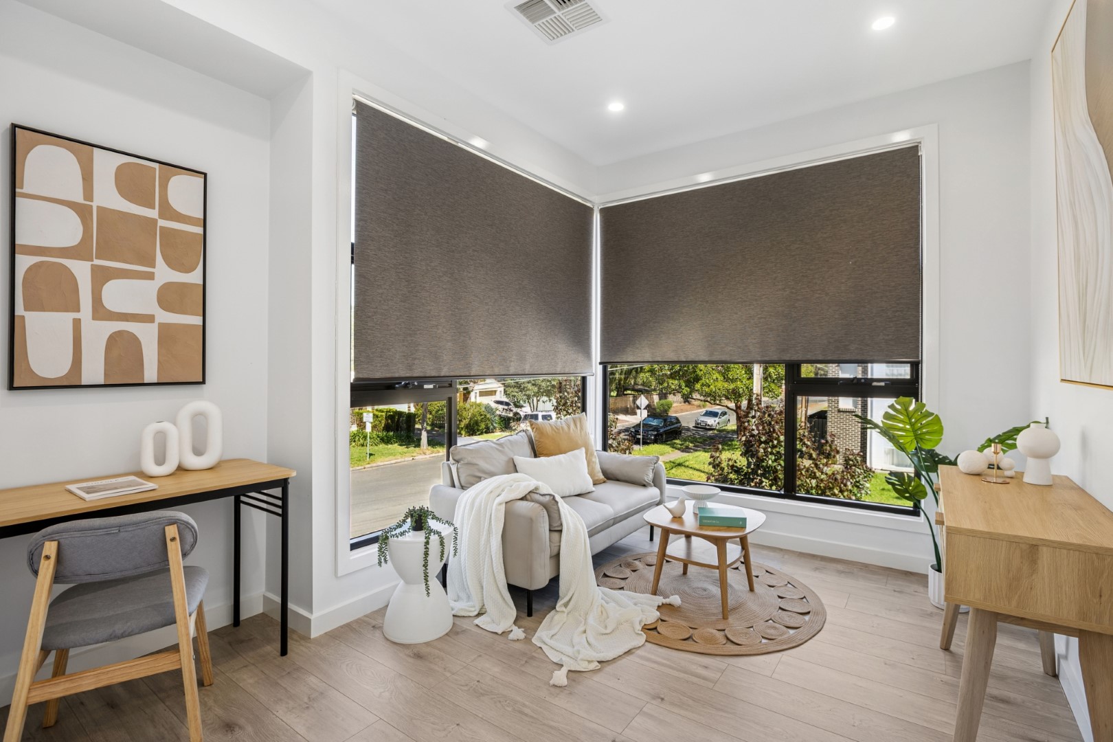 The ground floor includes a versatile bedroom or home office – ideal for guests, parents, or work-from-home flexibility. Upstairs, three spacious bedrooms are complemented by a study nook and retreat area. The master suite enjoys a walk-in robe, ceiling fan and elegant ensuite, while bedrooms two and three include built-in robes and are serviced by a stylish main bathroom with separate bath and shower.