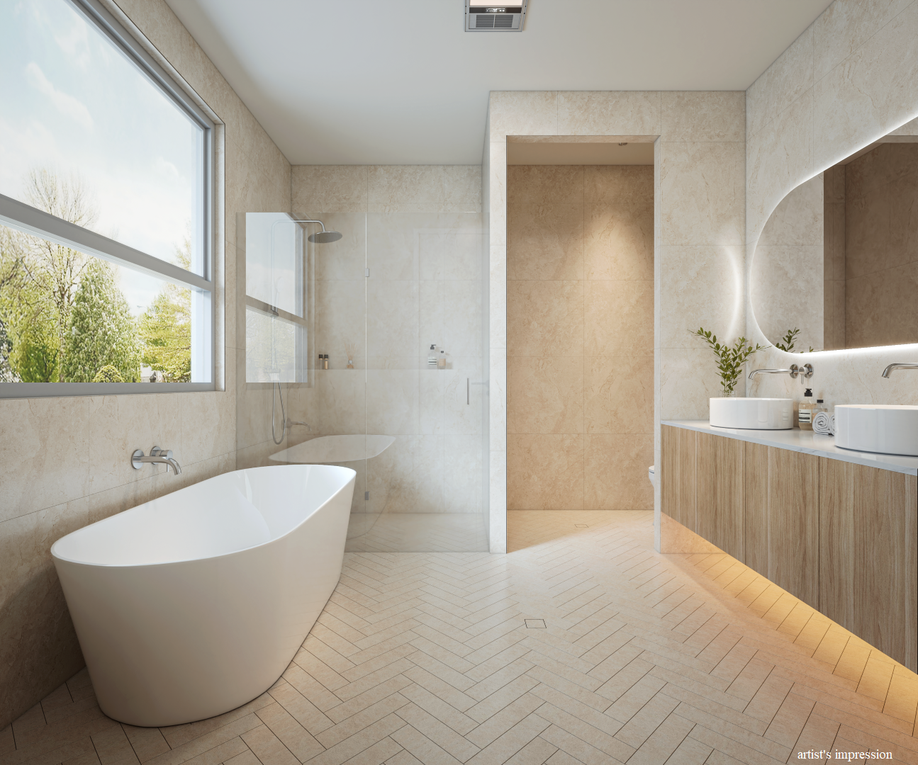 Bathrooms are designed with a strong focus on luxury, featuring full-height tiling, LED mirrors and high-quality fixtures, delivering a sophisticated, hotel-inspired experience.