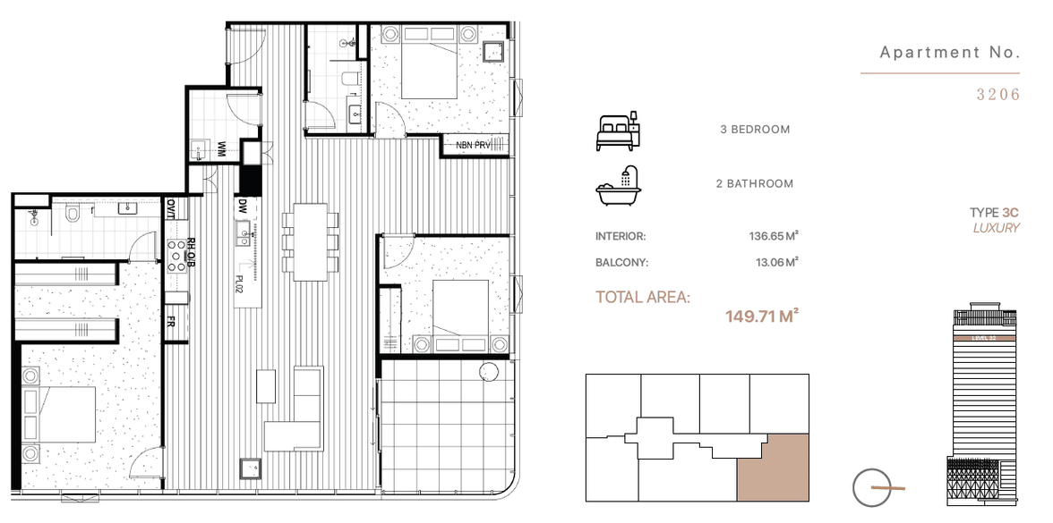 APT3206 Victoria Tower Adelaide | Three-Bedroom Apartments | Premium City Living