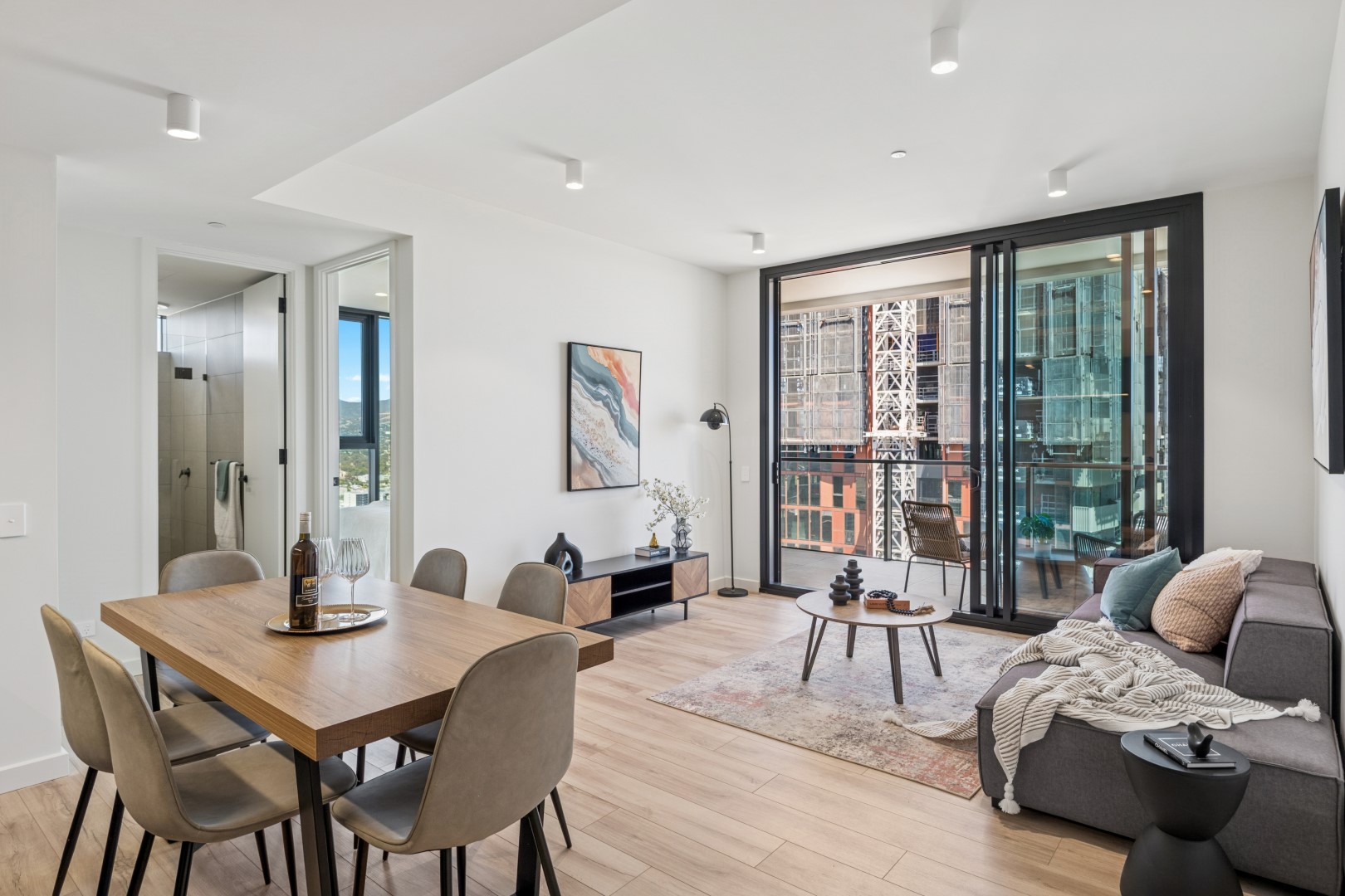 - Expansive open plan living and dining area with floor to ceiling windows