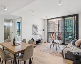 This floor plan centres around an expansive open-plan living and dining zone, framed by floor to ceiling windows that floods the home with natural light and showcases the urban outlook. Sliding doors open to a large private balcony, creating an effortless indoor & outdoor flow for morning coffee, twilight drinks or entertaining friends above the buzz of the market below.