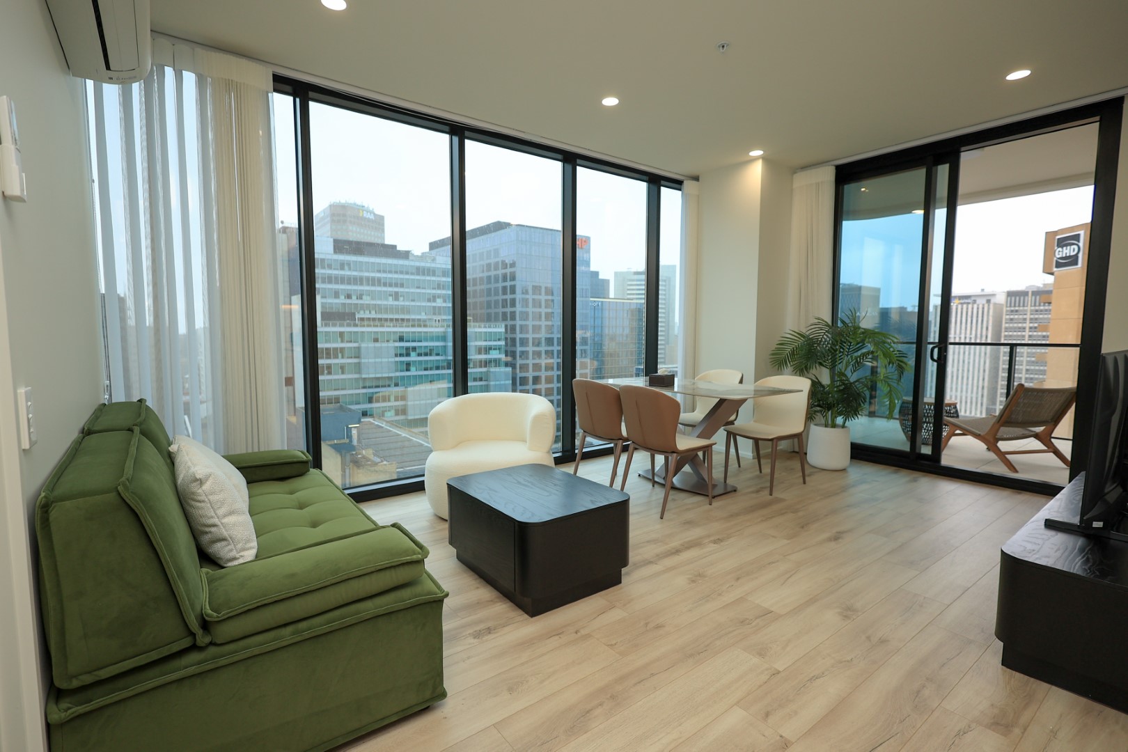 - Enjoy impressive cityscapes from the living area and bedrooms