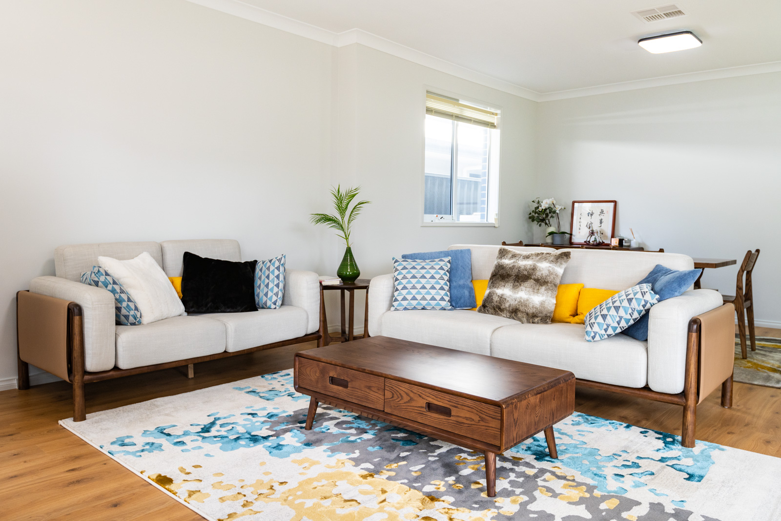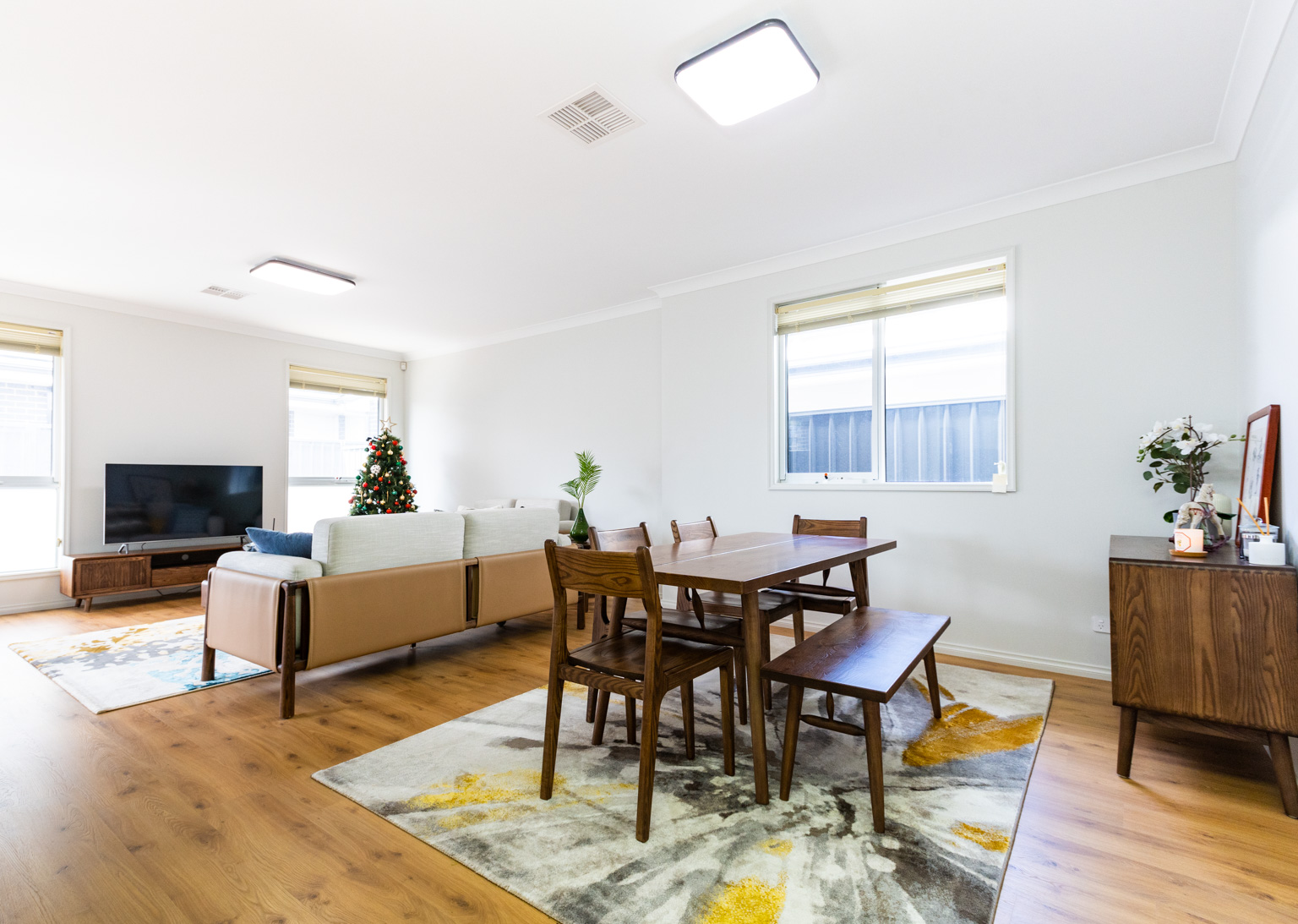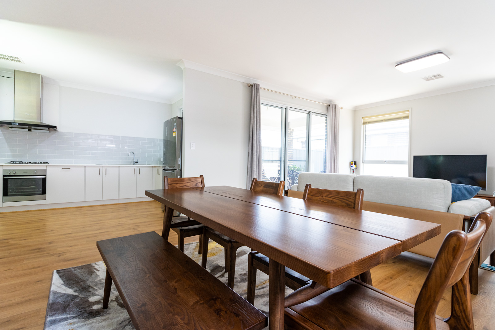 - Open-plan living and dining area