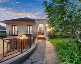 Fresh and bright interiors include a formal sitting room or library with large windows overlooking a tranquil pond framed by a sculpted hedge. The expansive open-plan living, dining, and gourmet kitchen flows seamlessly to an outdoor alfresco patio, which steps down to a sparkling saltwater swimming pool, ideal for entertaining.